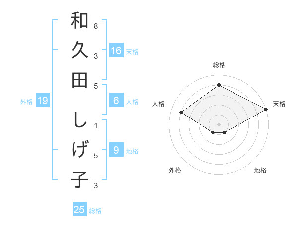 和久田 しげ子さんを姓名の画数から五運を鑑定