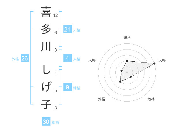 喜多川 しげ子さんを姓名の画数から五運を鑑定