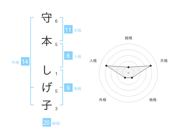 守本 しげ子さんを姓名の画数から五運を鑑定