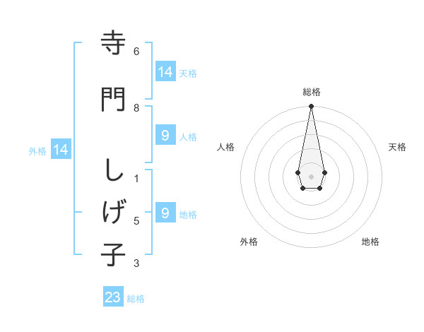 寺門 しげ子さんを姓名の画数から五運を鑑定