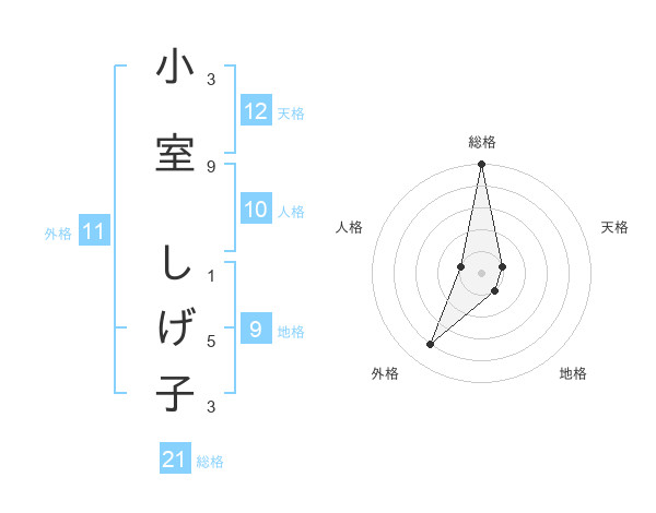 小室 しげ子さんを姓名の画数から五運を鑑定
