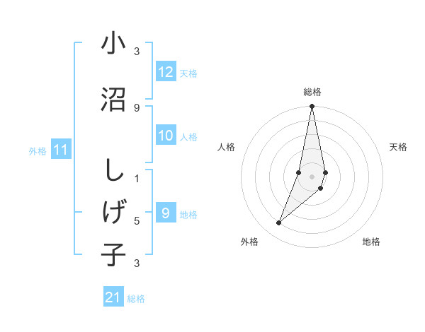 小沼 しげ子さんを姓名の画数から五運を鑑定
