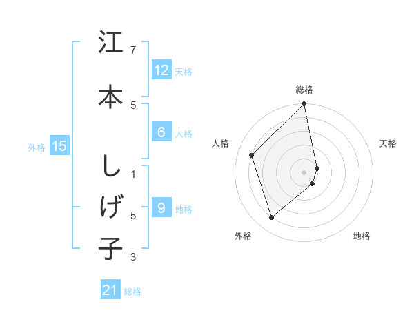 江本 しげ子さんを姓名の画数から五運を鑑定