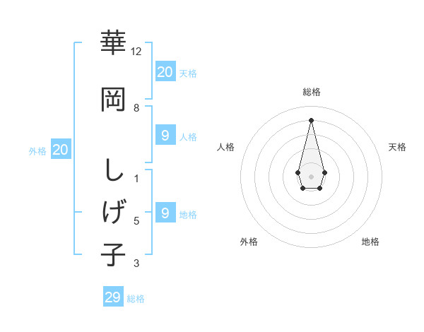 華岡 しげ子さんを姓名の画数から五運を鑑定