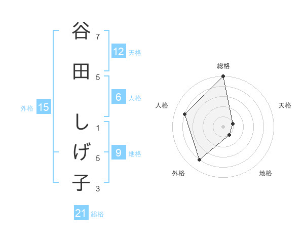 谷田 しげ子さんを姓名の画数から五運を鑑定