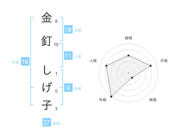 金釘 しげ子さんを姓名の画数から五運を鑑定