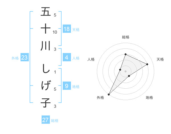 五十川 しげ子さんを姓名の画数から五運を鑑定