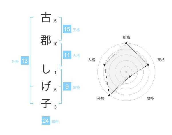 古郡 しげ子さんの外格は13画の5点!