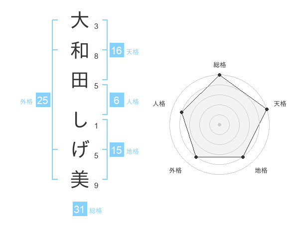大和田 しげ美さんを姓名の画数から五運を鑑定