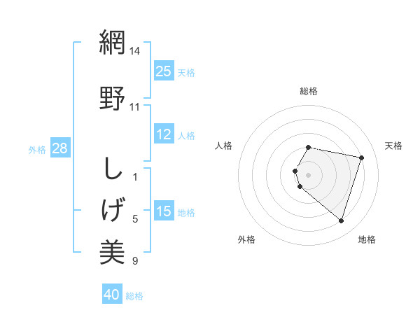 網野 しげ美さんを姓名の画数から五運を鑑定