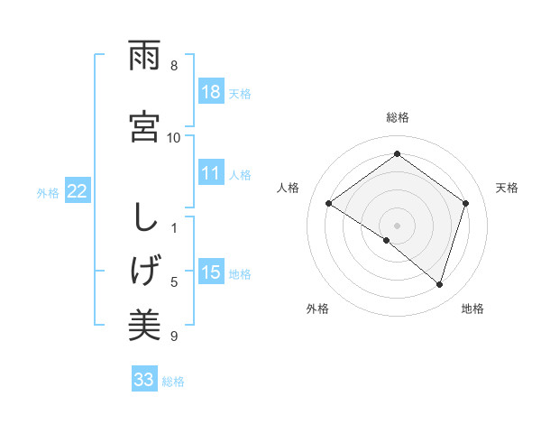 雨宮 しげ美さんの総格は33画の4点!