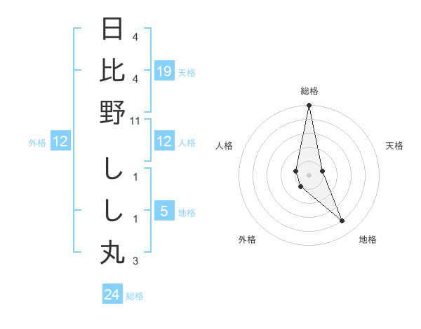 日比野 しし丸さんを姓名の画数から五運を鑑定