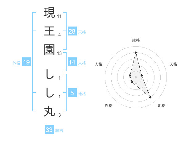 現王園 しし丸さんを姓名の画数から五運を鑑定
