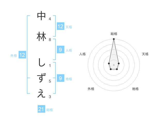 中林 しずえさんの総格は21画の5点!