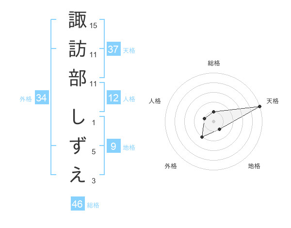 諏訪部 しずえさんを姓名の画数から五運を鑑定