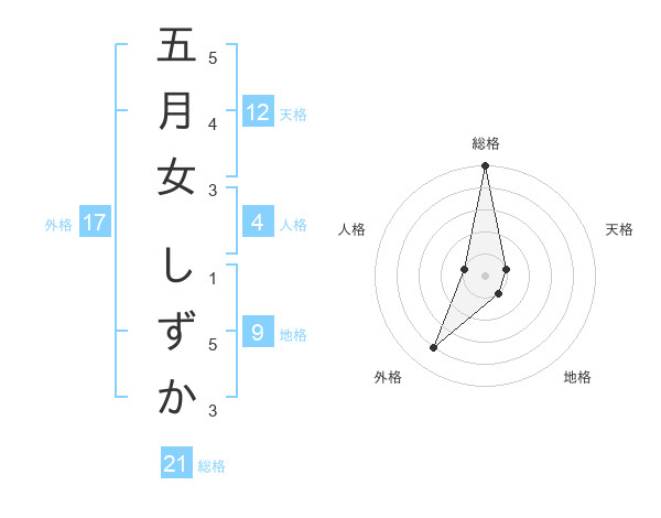 五月女 しずかさんを姓名の画数から五運を鑑定