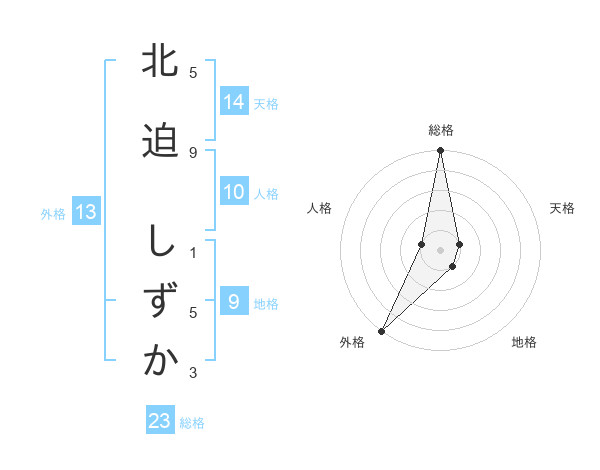 北迫 しずかさんを姓名の画数から五運を鑑定