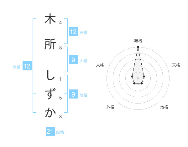 木所 しずかさんの総格は21画の5点!