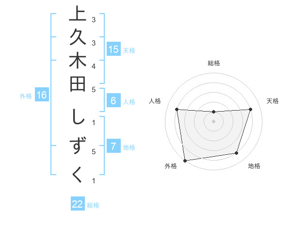 上久木田 しずくさんを姓名の画数から五運を鑑定