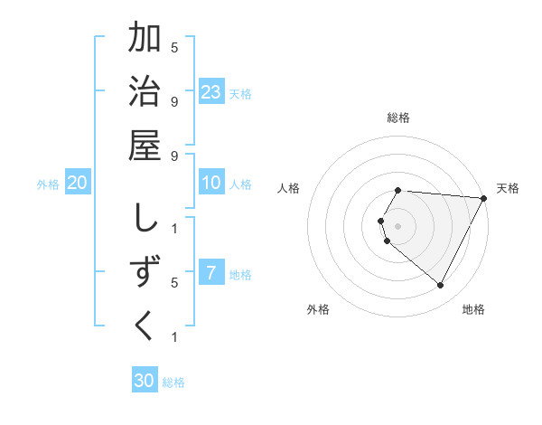 加治屋 しずくさんを姓名の画数から五運を鑑定