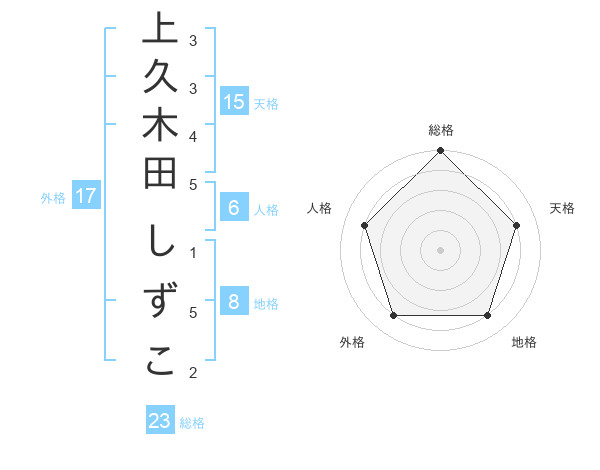 上久木田 しずこさんを姓名の画数から五運を鑑定