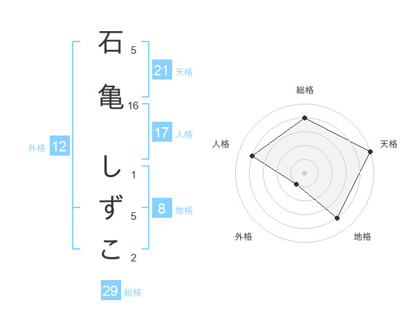 石亀 しずこさんの天格は21画の5点!