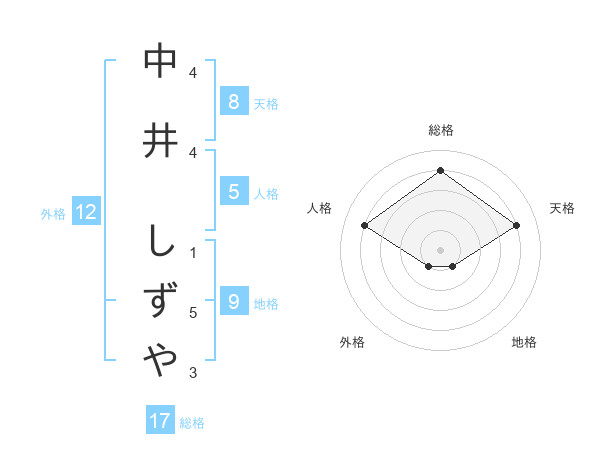中井 しずやさんの天格は8画の4点!