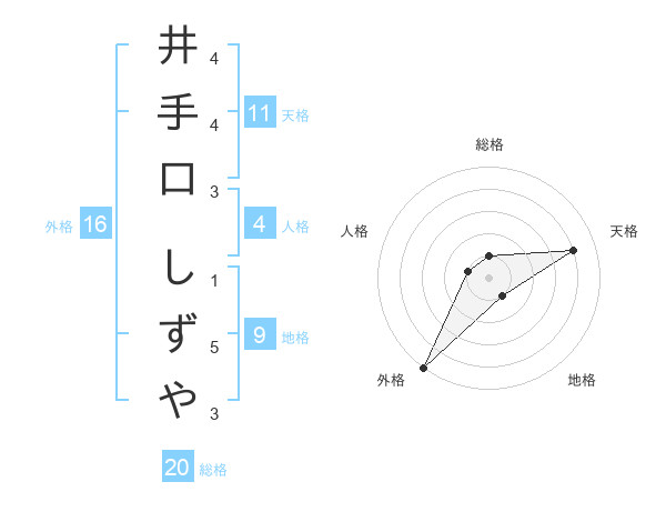 井手口 しずやさんを姓名の画数から五運を鑑定