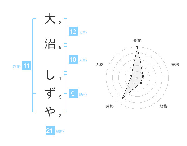 大沼 しずやさんの総格は21画の5点!