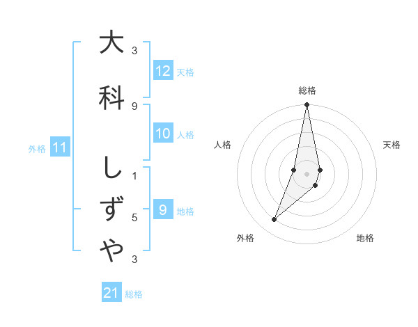 大科 しずやさんの総格は21画の5点!