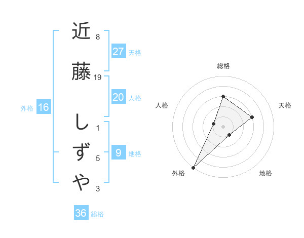 近藤 しずやさんの外格は16画の5点!
