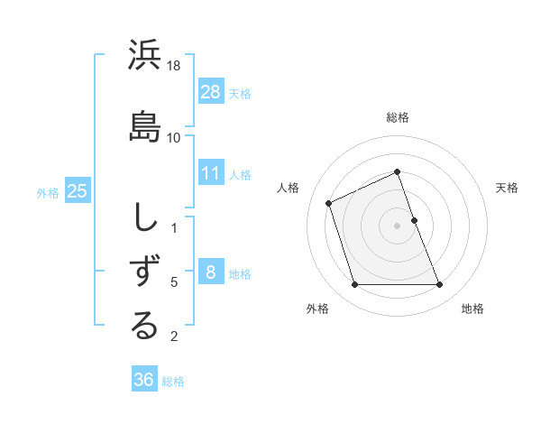 浜島 しずるさんを姓名の画数から五運を鑑定