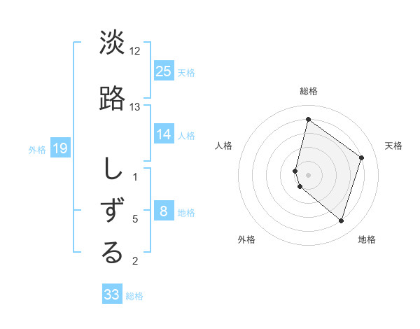 淡路 しずるさんを姓名の画数から五運を鑑定