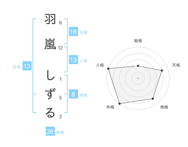 羽嵐 しずるさんを姓名の画数から五運を鑑定