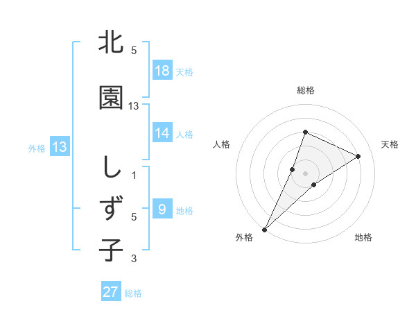 北園 しず子さんの外格は13画の5点!