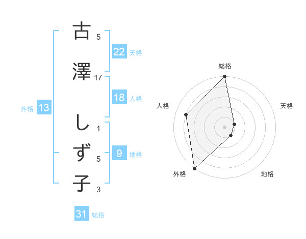 古澤 しず子さんの外格は13画の5点!