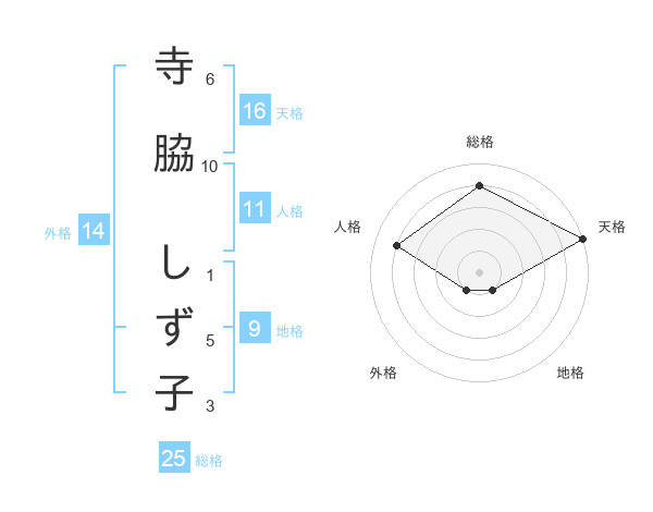 寺脇 しず子さんを姓名の画数から五運を鑑定