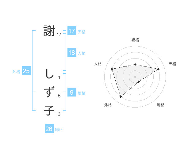 謝 しず子さんの外格は25画の4点!
