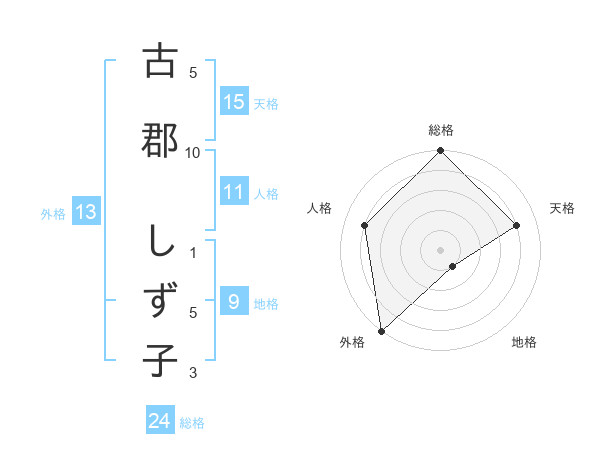 古郡 しず子さんを姓名の画数から五運を鑑定