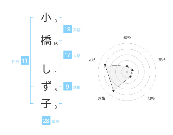 小橋 しず子さんを姓名の画数から五運を鑑定