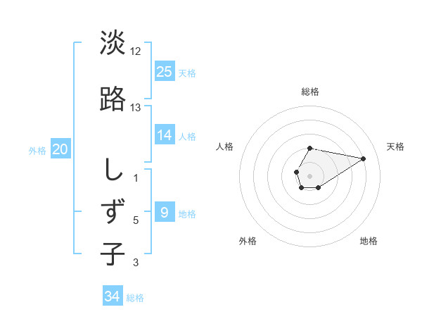 淡路 しず子さんを姓名の画数から五運を鑑定