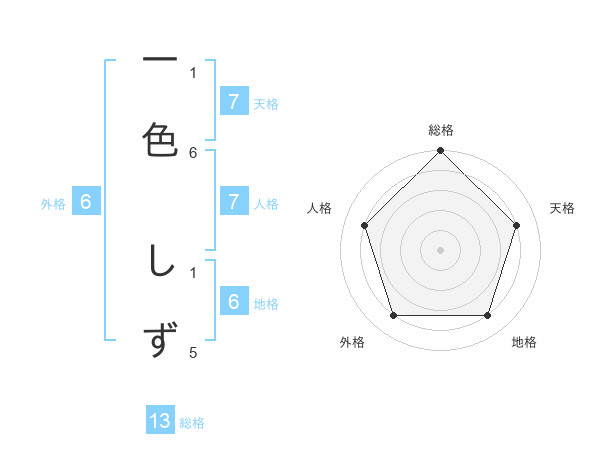 一色 しずさんの総格は13画の5点!