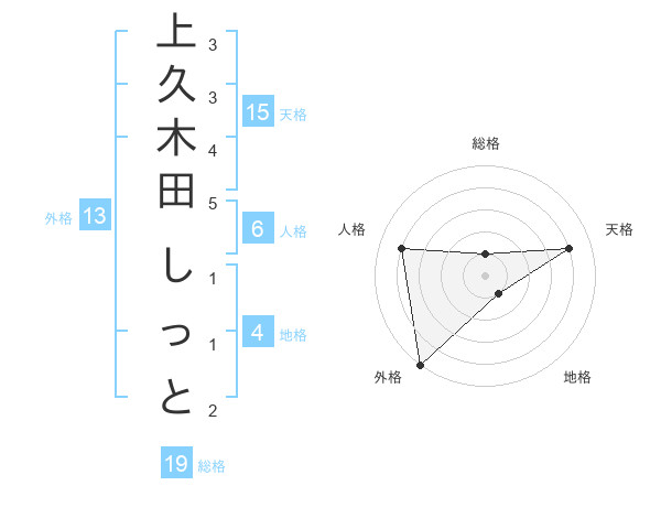 上久木田 しっとさんを姓名の画数から五運を鑑定