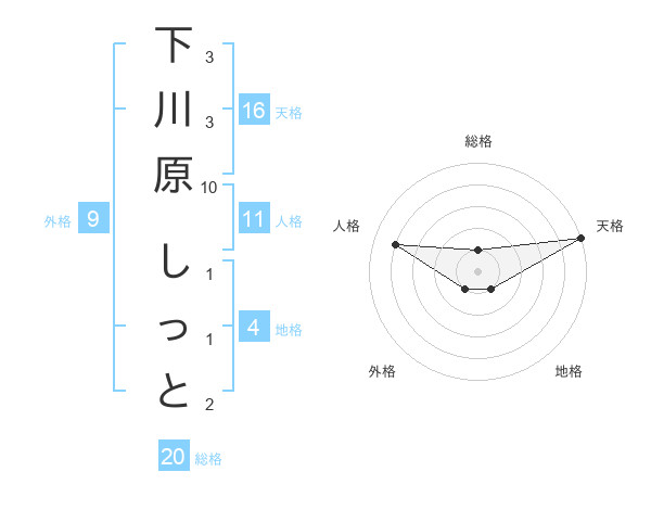 下川原 しっとさんの総格は20画の1点!