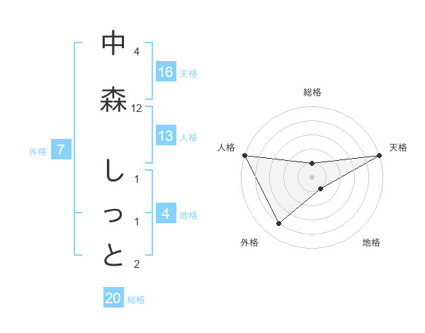中森 しっとさんの総格は20画の1点