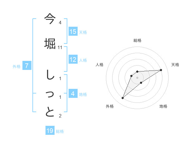 今堀 しっとさんの総格は19画の1点