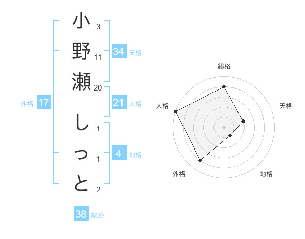 小野瀬 しっとさんの外格は17画の4点!