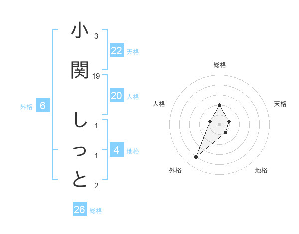 小関 しっとさんの総格は26画の2点!