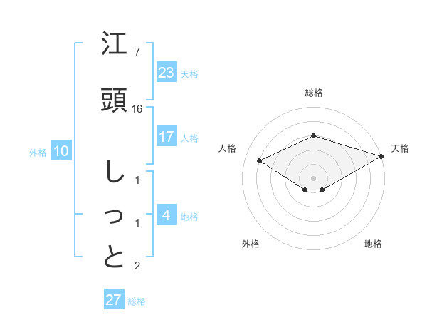 江頭 しっとさんの天格は23画の5点!