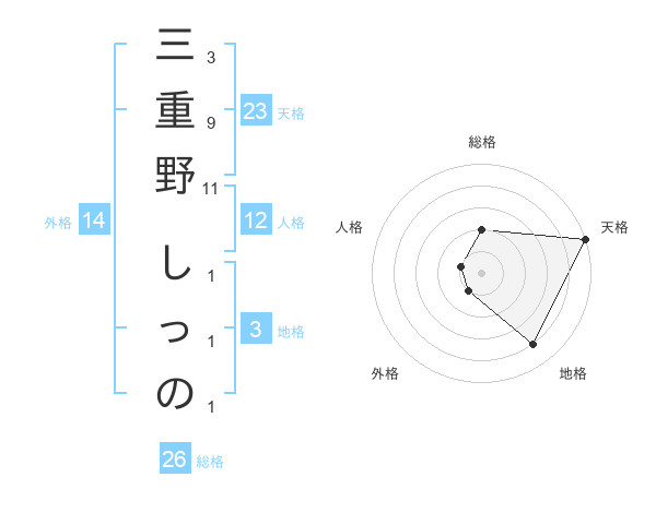 三重野 しっのさんの天格は23画の5点!